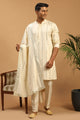 Men's Cream Viscose Straight Kurta Pyjama & Dupatta Set
