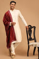 Men's Cream Viscose Straight Kurta Pyjama & Dupatta Set