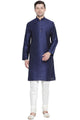 Men's Dark Blue Silk Blend Straight Kurta Pyjama Set