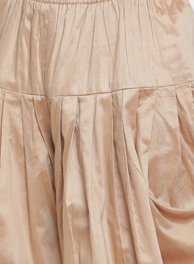 Description: Curved Shape Pathani Style Men Silk with slight Cotton mix for a soft comfortable feel, Mid Length Kurta With Buttoned Cuff paired with Cowl Style Patiala Dhoti Pant Set