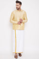 Men's Gold Silk Blend Straight Shirt And Mundu