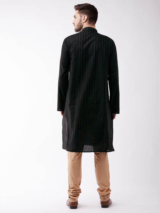 Men's Black Cotton Blend Straight Kurta Pyjama Set