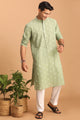 Description: Woven motif Kurta With Designer Collar and Placket For Men. Comes With Pant Style Pyjama.
