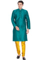 Men's Green Silk Blend Straight Kurta Pyjama Set