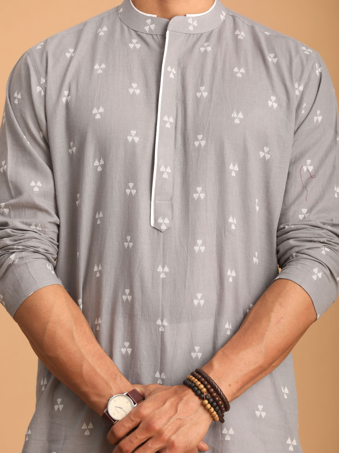 Men's Grey Cotton Straight Kurta Pyjama Set