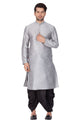 Men's Grey Silk Blend Straight Kurta and Dhoti Set