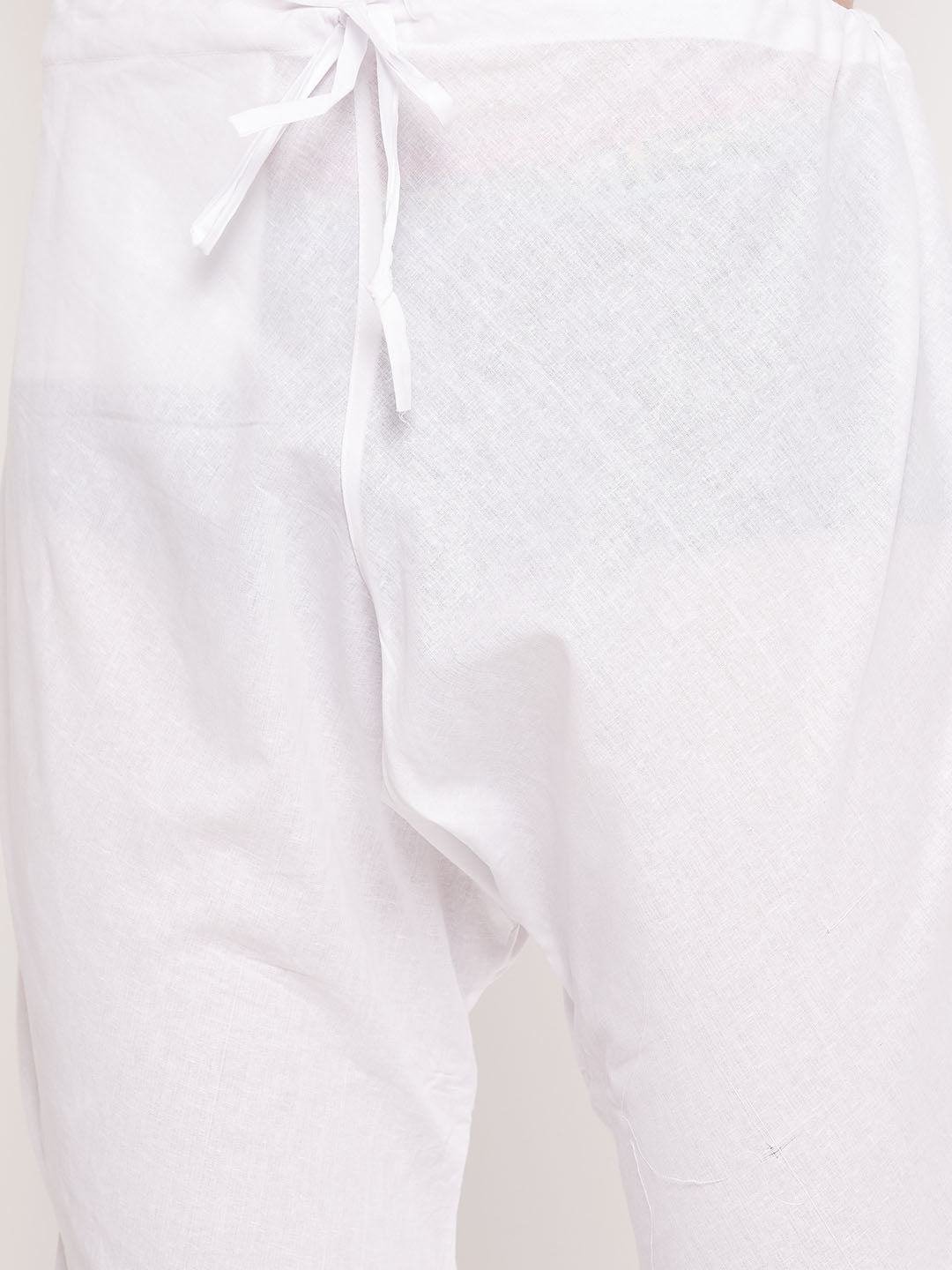 Description: Classic Ethnic Motif Jacquard Silk Blend Kurta with Golden Buttons And White Cotton Pyjama