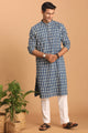 Description: Indigo Rubber Print Kantha Stitch Kurta And Pyjama For Men.