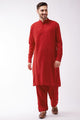 Men's Maroon Cotton Blend Pathani Kurta and Patiala Set