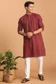 Men's Maroon Cotton Straight Kurta Pyjama Set
