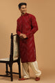 Men's Maroon Georgette Straight Kurta and Patiala Set