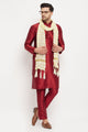 Men's Maroon Silk Blend Straight Kurta Pyjama & Dupatta Set