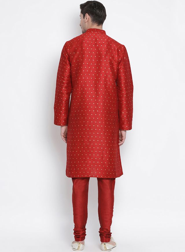 Men's Maroon Silk Blend Straight Kurta Pyjama Set