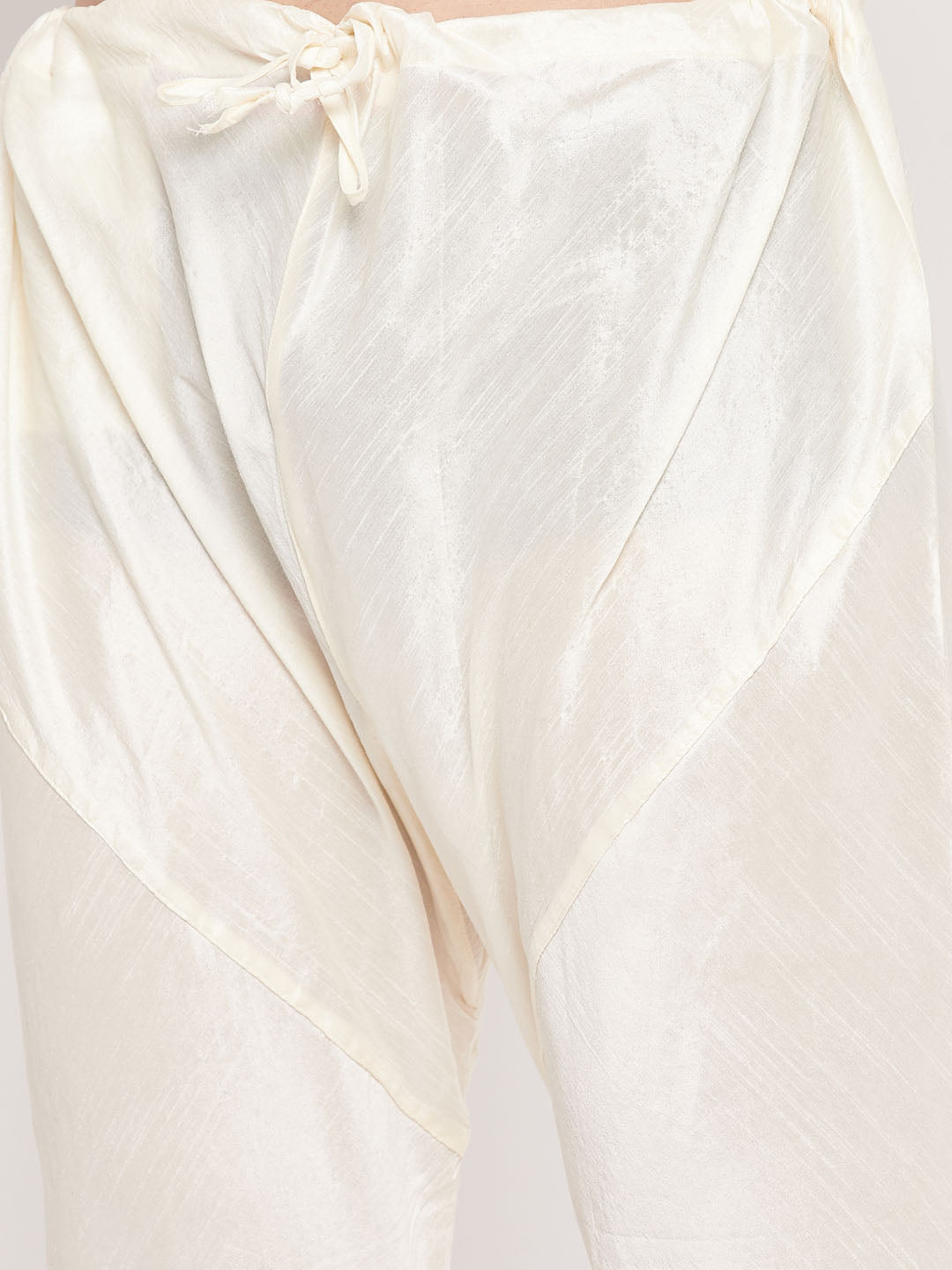 Description: Ethnic Motif Jacquard Silk Blend Kurta with Embellished Buttons And Cream Pyjama