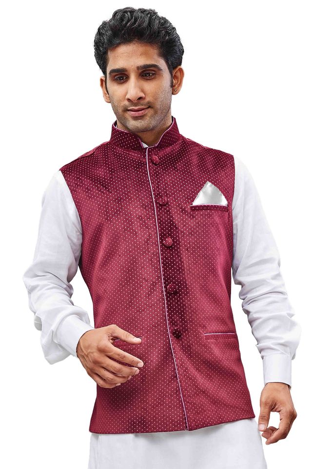 Men's Maroon Velvet Straight Nehru Jacket