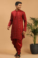 Men's Maroon Viscose Straight Kurta and Dhoti Set