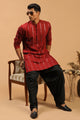 Men's Maroon Viscose Straight Kurta and Patiala Set