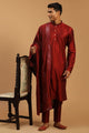 Men's Maroon Viscose Straight Kurta Pyjama & Dupatta Set