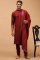 Men's Maroon Viscose Straight Kurta Pyjama & Dupatta Set