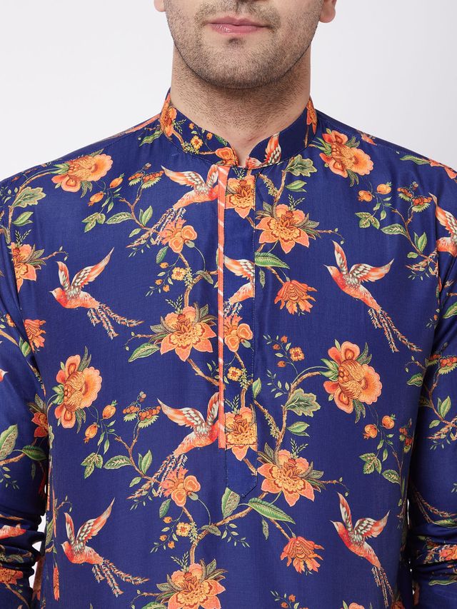 Men's MulticoloredBaseBlue Muslin Straight Kurta Pyjama Set