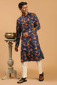 Men's MulticoloredBaseBlue Muslin Straight Kurta Pyjama Set