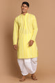Description: Certainly A Must Have Classic Ensemble Of Lukhnowi Chikankari Kurta And Cotton Dhoti Set