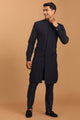 Men's Navy Blue Cotton Blend Straight Kurta Pyjama Set