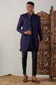 Men's Navy Blue Silk Blend Regular Sherwani Set