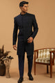 Men's Navy Blue Silk Blend Regular Sherwani Set