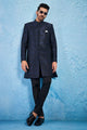 Men's Navy Blue Silk Blend Straight Sherwani Set