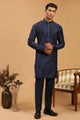 Men's Navy Blue Viscose Curved Kurta Pyjama Set