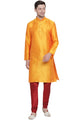 Men's Orange Silk Blend Straight Kurta Pyjama Set