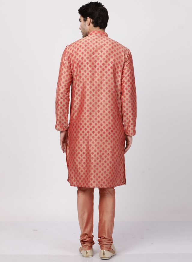 Men's Pink Cotton Blend Straight Kurta Pyjama Set