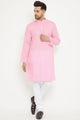 Men's Pink Cotton Blend Straight Kurta Pyjama Set