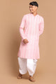 Men's Pink Pure Cotton Straight Kurta and Dhoti Set