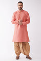 Men's Pink Silk Blend Straight Kurta and Dhoti Set