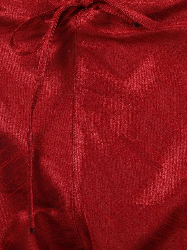 Description: A Banarasi cotton with silk dobby jacquard kurta with a contrast piping to highlight the yoke and break the monotony. It has a nice soft comfortable feel. The standout part of the kurta is the diamond stone detachable buttons. Set contains silk churidar pyjama.