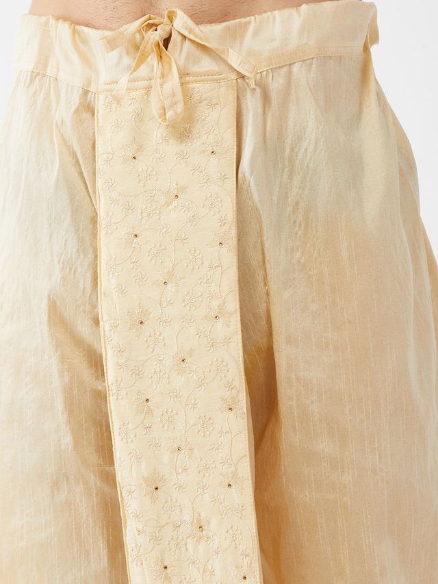 Description: Viscose Blend Calf Length Kurta And Embroidered Panel Traditional Dhoti