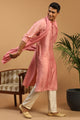 Men's Pink Cotton Blend Straight Kurta Pyjama & Dupatta Set