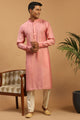 Men's Pink Cotton Blend Straight Kurta Pyjama Set