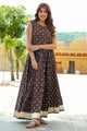 Black and red printed ready to wear lehenga, has slip-on closure, flared hem