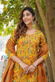 Mustard yellow, orange and green printed Kurta with Trousers & dupatta