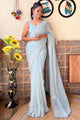 Women's Georgette Light Blue Embellished Designer Saree With Blouse Piece
