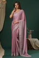 Women's Organza Mauve Embroidered Designer Saree With Blouse Piece
