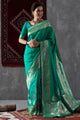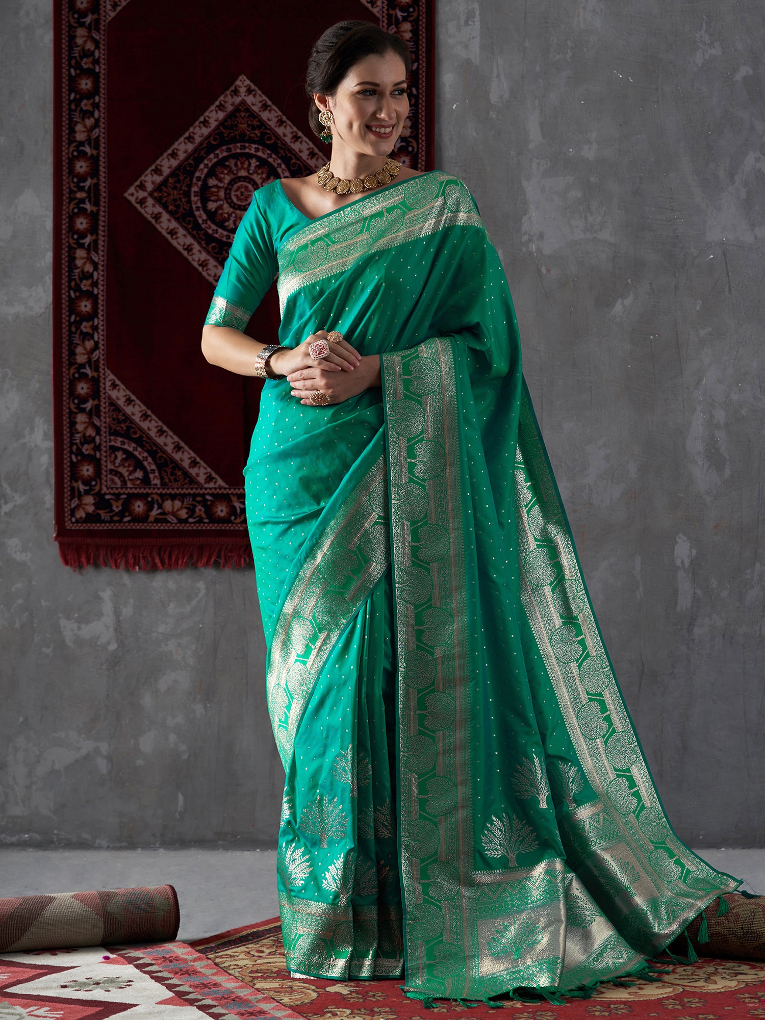 Women's Silk Blend Sea Green Woven Design Designer Saree With Blouse Piece