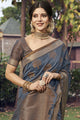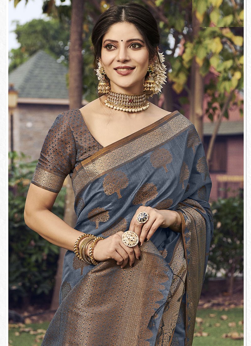 Dhiyona GR Women's Yashomati Anchor Grey Zari Woven Design Chanderi Cotton Saree