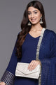 Dhiyona VA Women'sNavy Blue V Neck Flared sleeves Kurta with trouser and dupatta