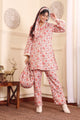 Dhiyona VA Women'sOff White Floral Printed V-Neck Flared Sleeves Straight Kurta With Trousers