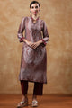 Dhiyona VA Women'sPaisley Printed Mandarin Collar Straight Kurta With Trousers