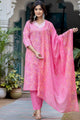 Pink printed Kurta with Trousers with dupatta